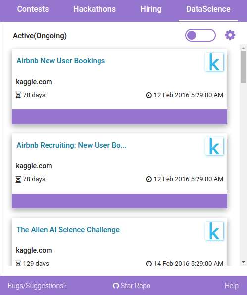 Challenge Hunt keeps you updated with all active and upcoming coding competitions and hackathons from around the world.