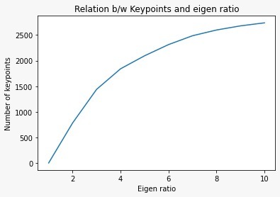 This shows that on increasing the threshold value, the number of keypoints increases and we obtain a curve which is similar to a parabolic graph.